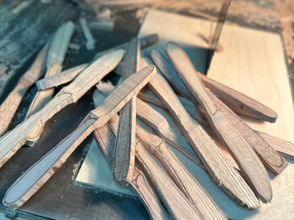 木と革の作品には物語が刻まれます。